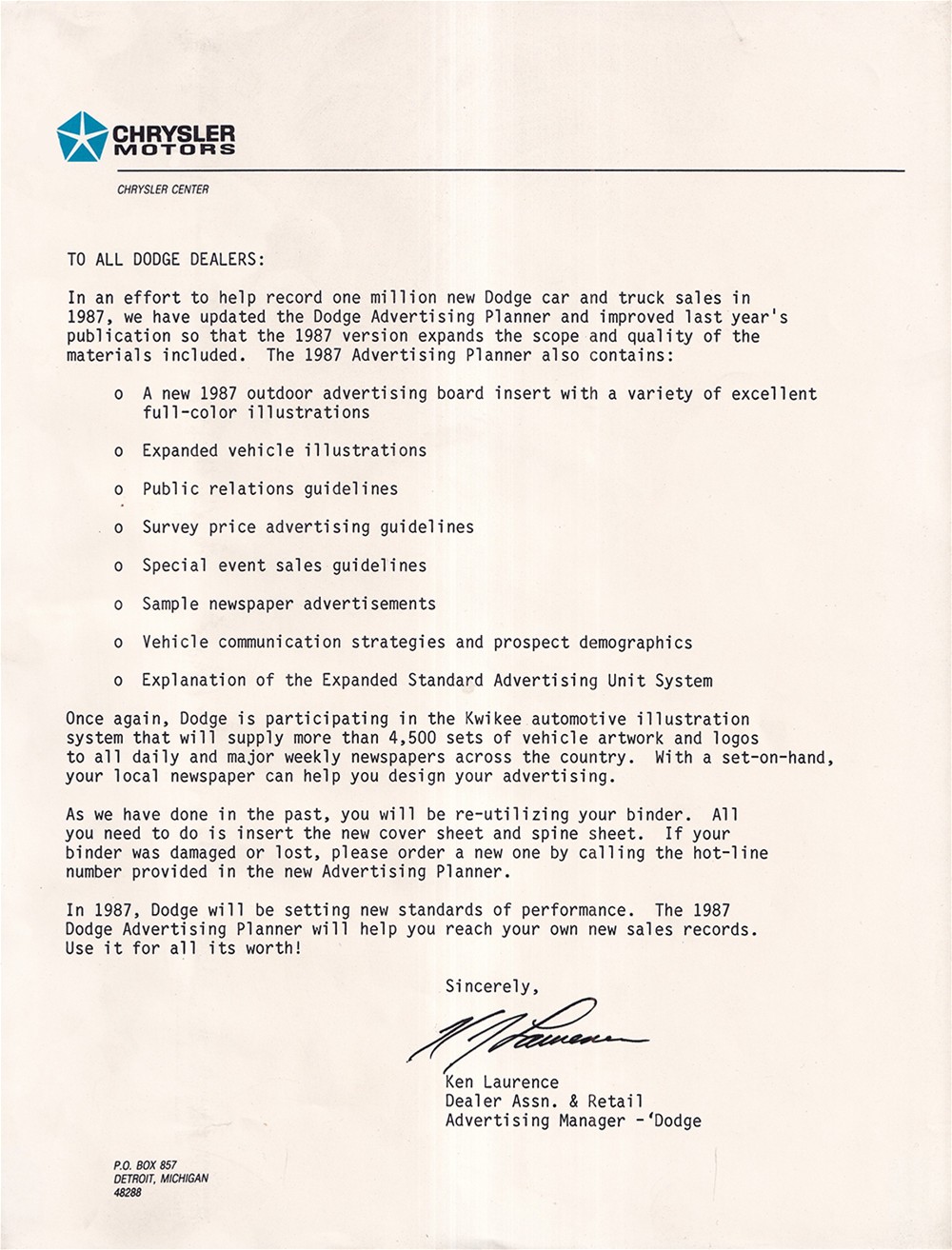 "1987 Dodge Advertising Planner"