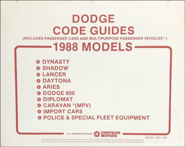 "Dodge Car Code Guides 1988 models"