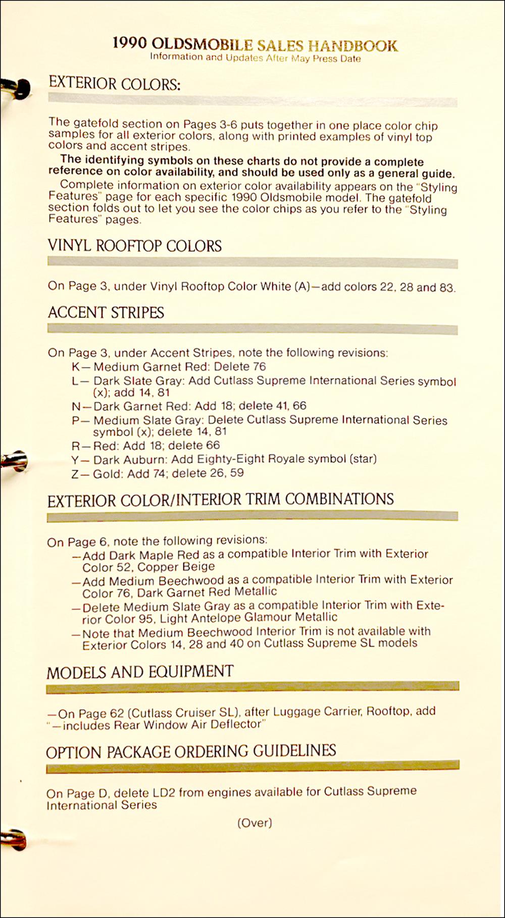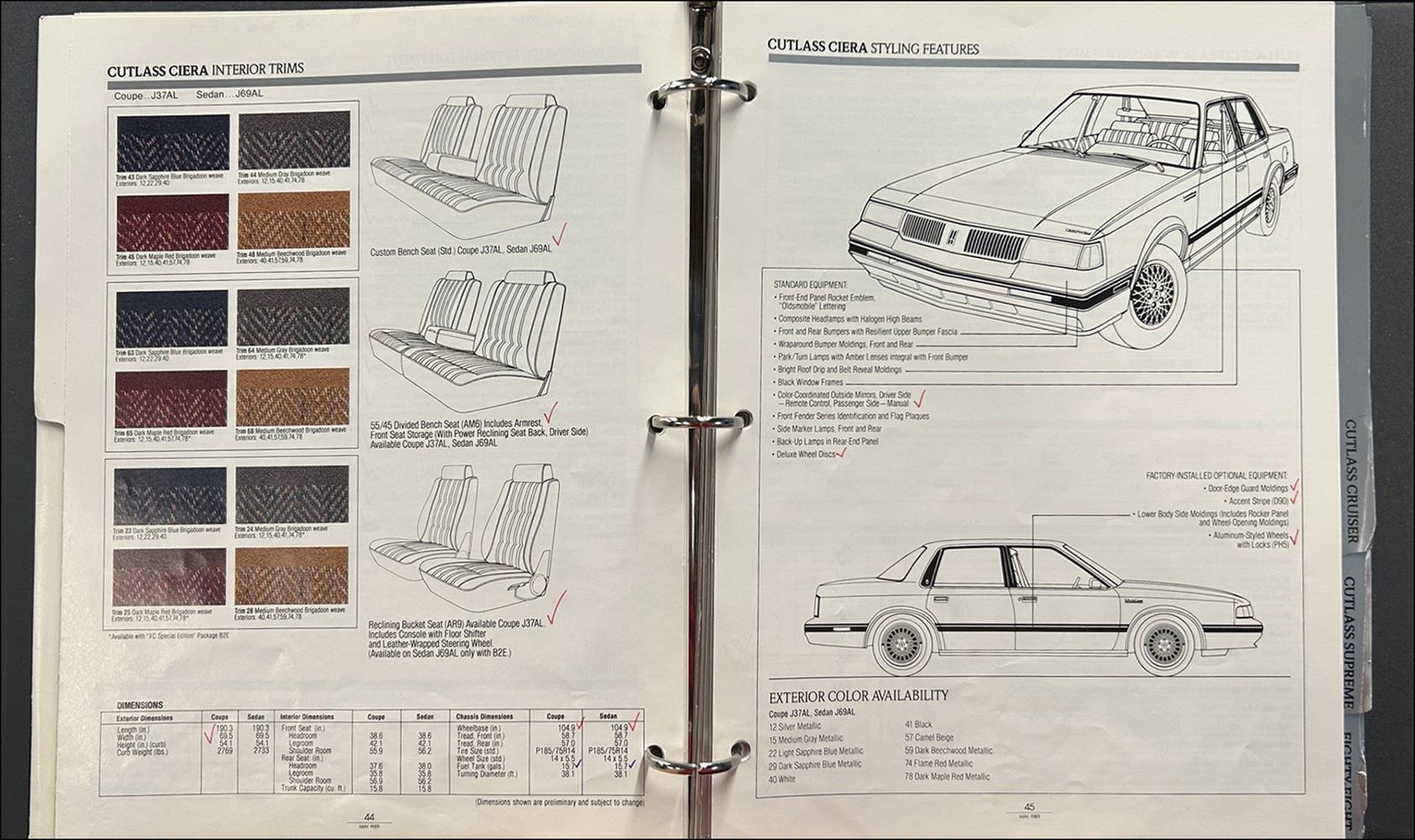 Data or Facts -- detailed information on standard and optional equipment and specifications. You will find out the dealer's "inside information" that is far more detailed than a sales brochure Includes the accessories sales brochure inside the binder.