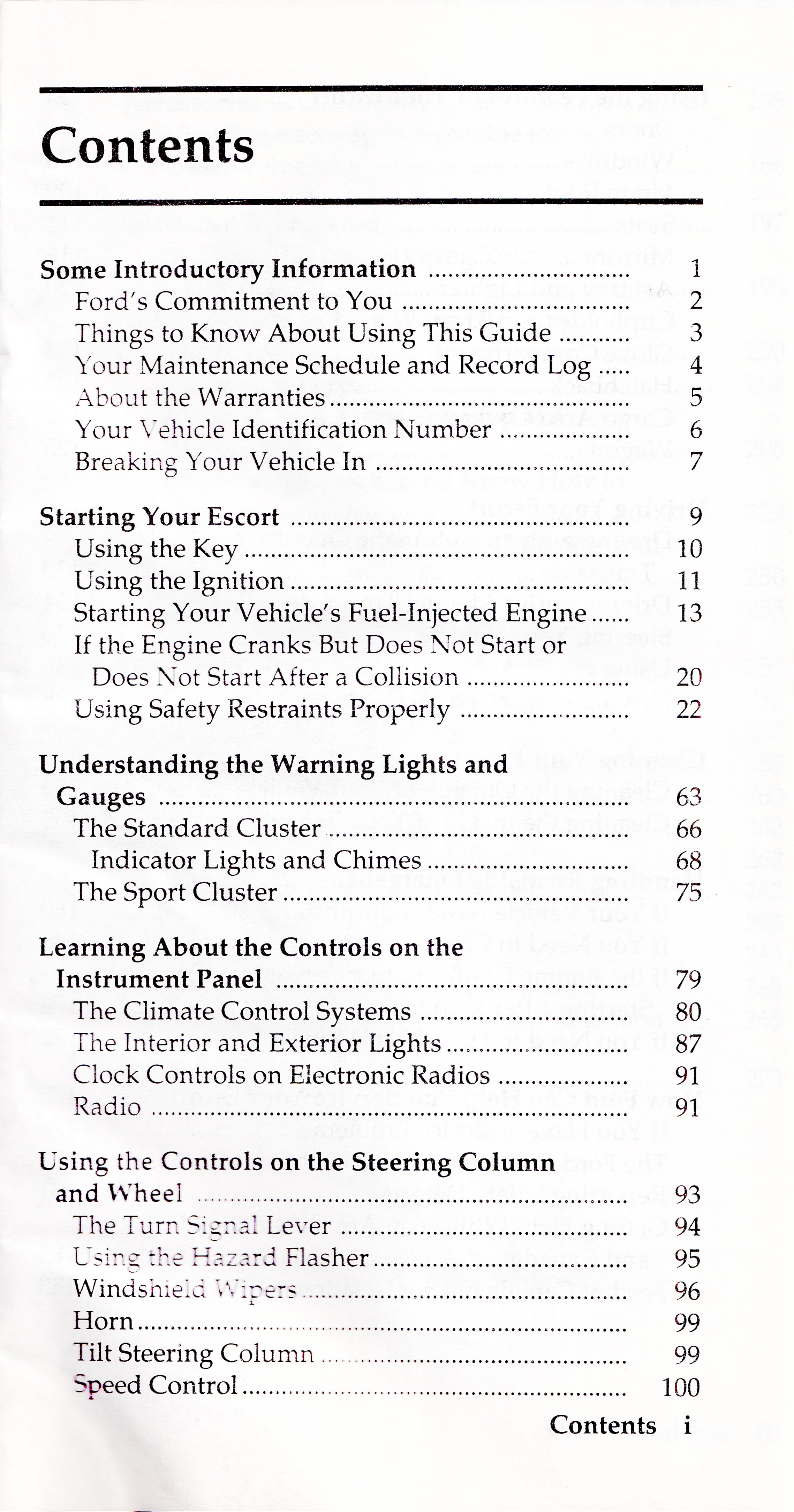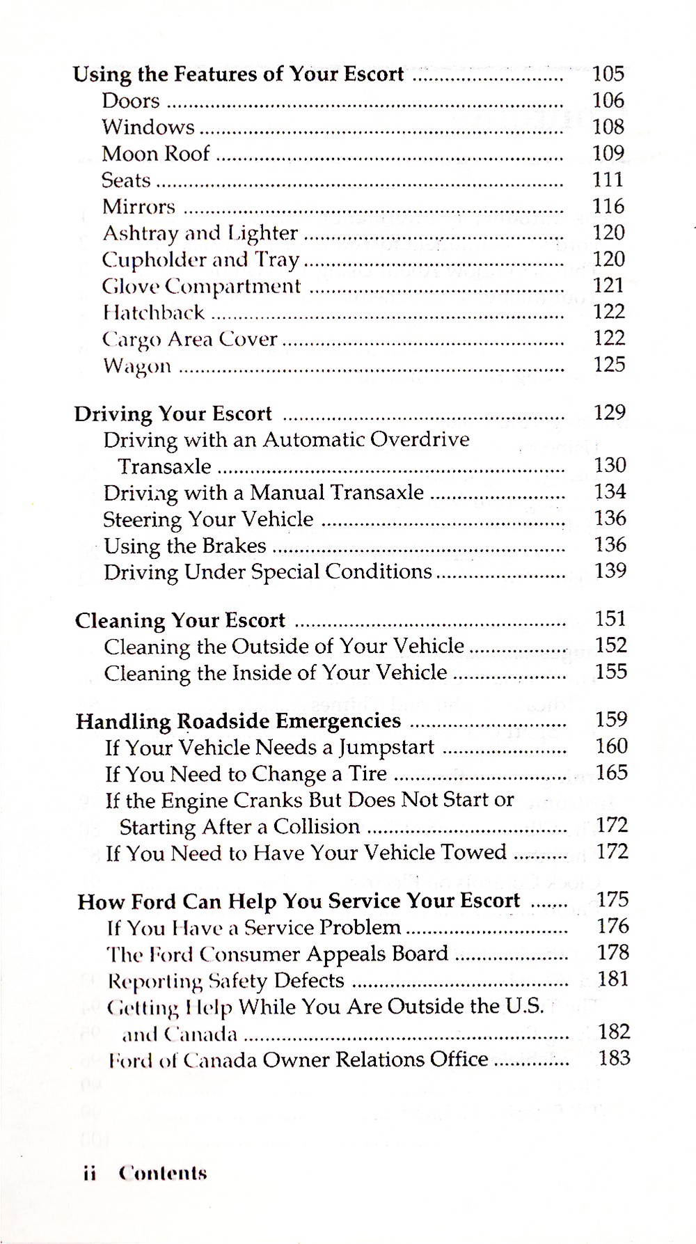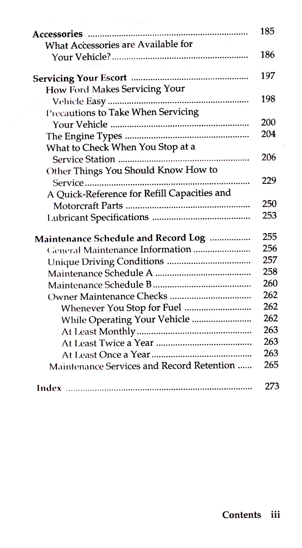 Escort 1991 Owner Guide; Servicing, Maintenance, Record Log, Index