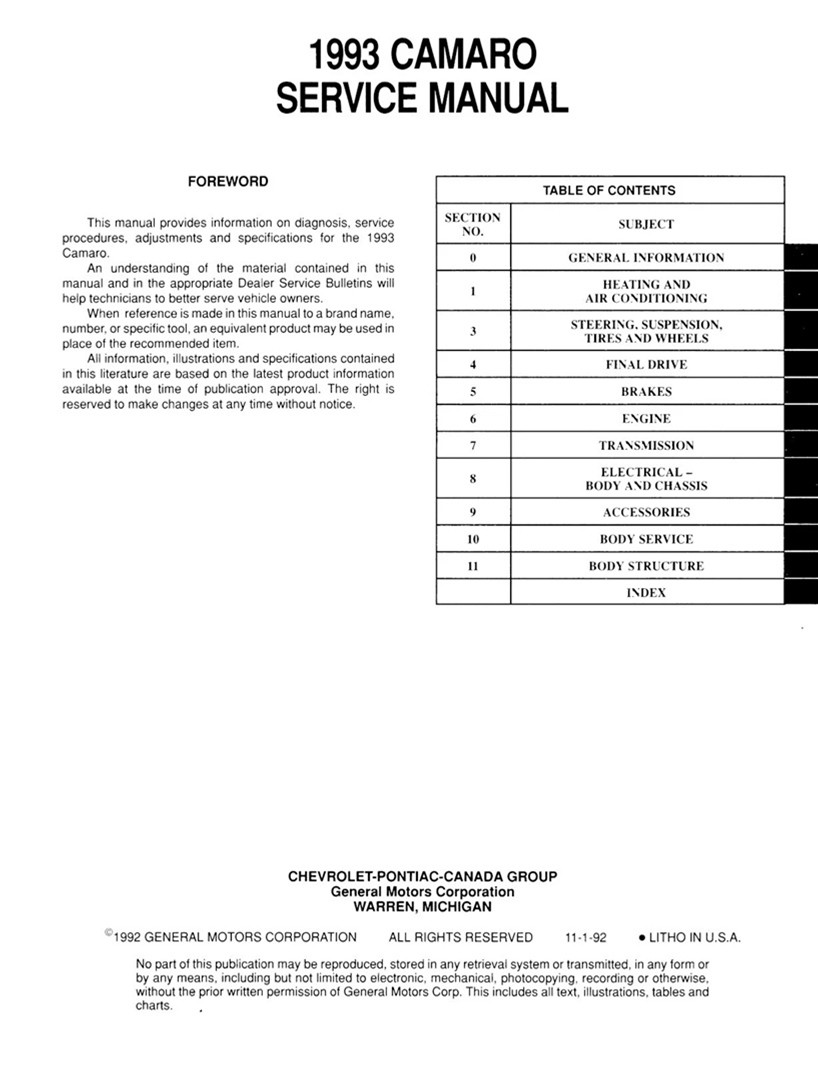 1993 Chevrolet Camaro Service Manuals