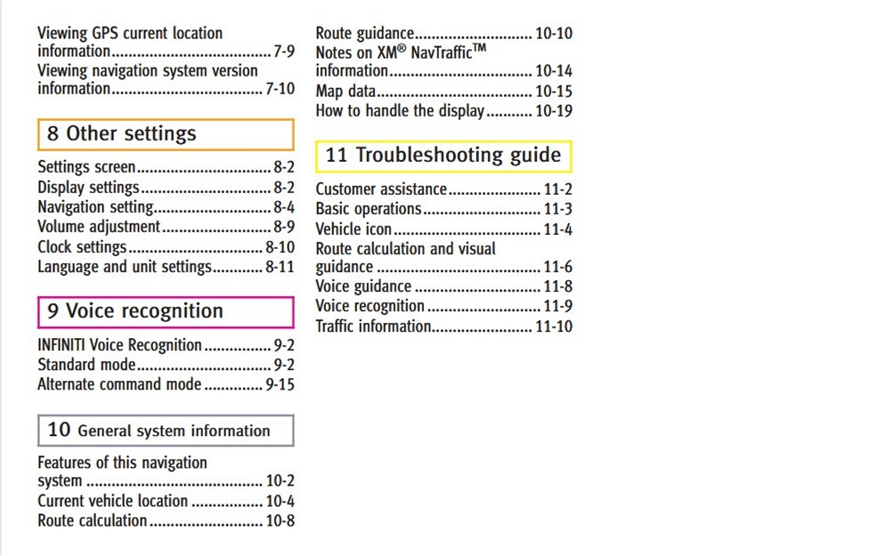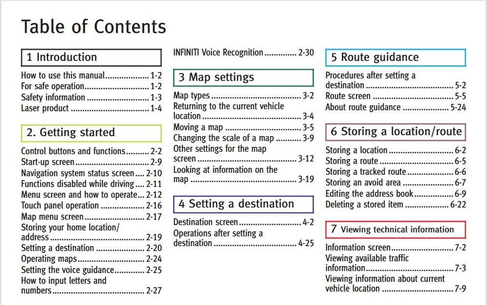 Written for you by Infiniti, this factory-published original manual shows you how to operate your navigation system. You will find a symbol glossary, which will identify each button or symbol, virtual or physical, with an image, and explain its function. You will learn to program your destination and detours using step-by-step instructions accompanied by images of each menu that should appear on the screen. You can also learn how to use the interface to operate connected equipment such as air conditioning controls or the audio system. Factory-produced navigation systems use proprietary hardware and software that is not always user friendly. Buy now to own the best manual for figuring out your navigation system.