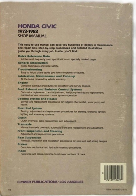 Honda Civic: 1973-1983 Standard and Cvcc Shop Manual