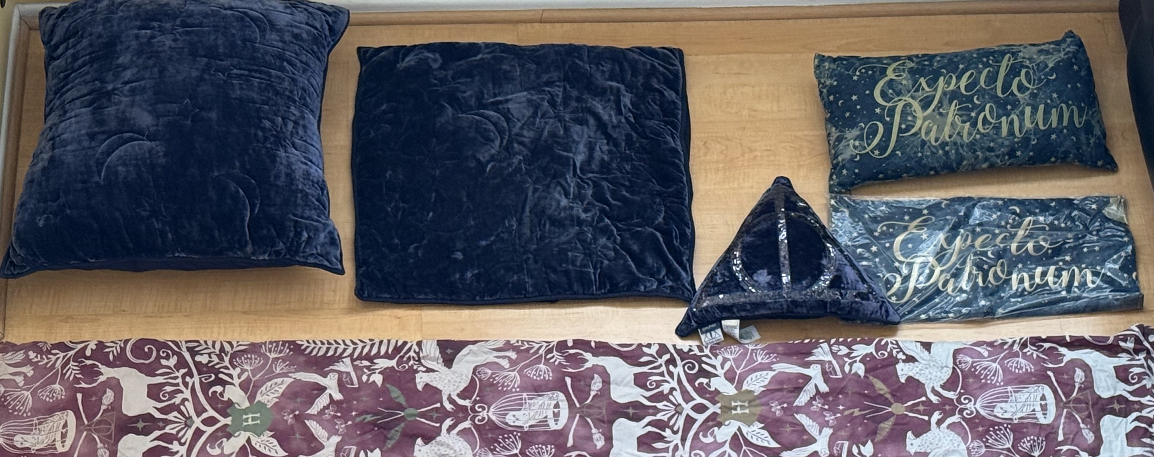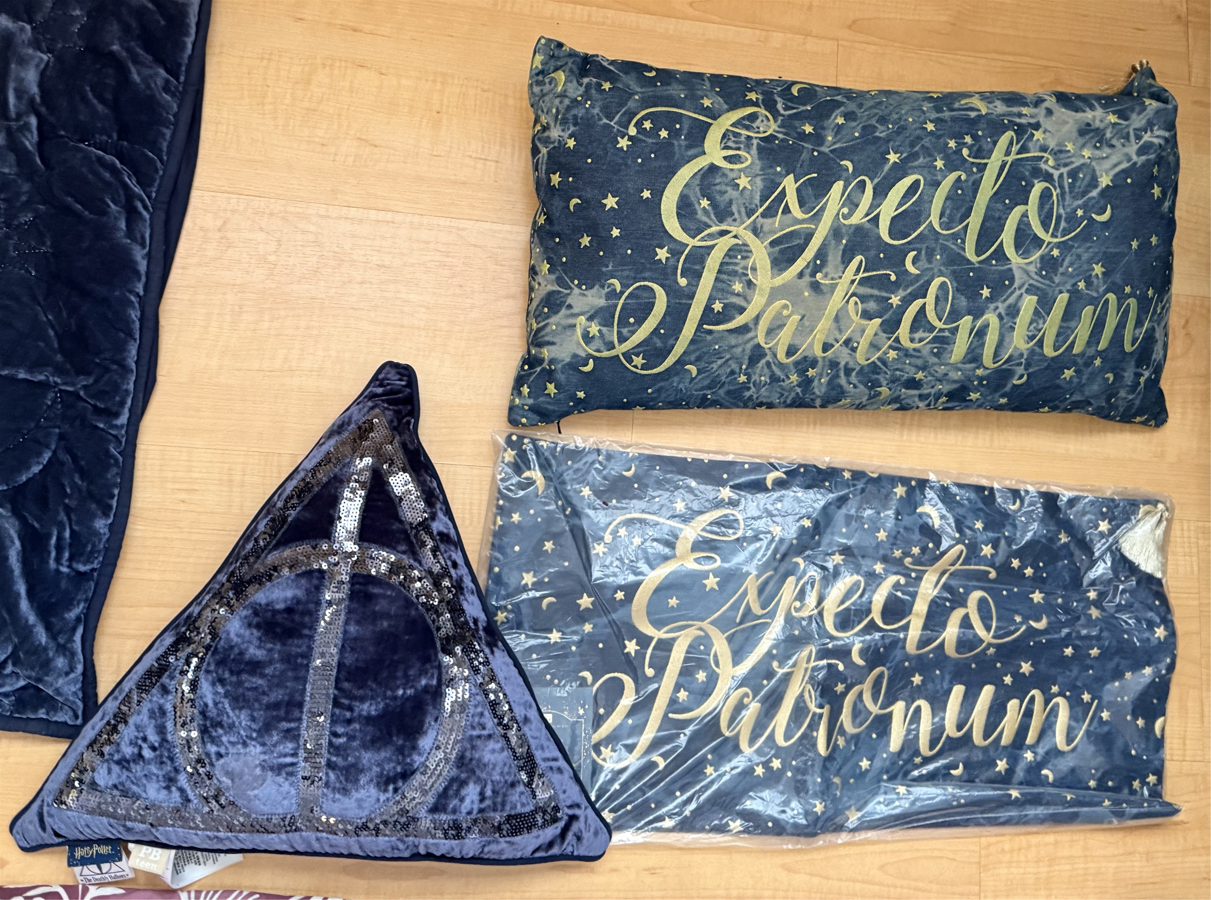 2 - "expecto patronum" throw pillows - one excellent condition used with pillow insert, one brand new case without insert