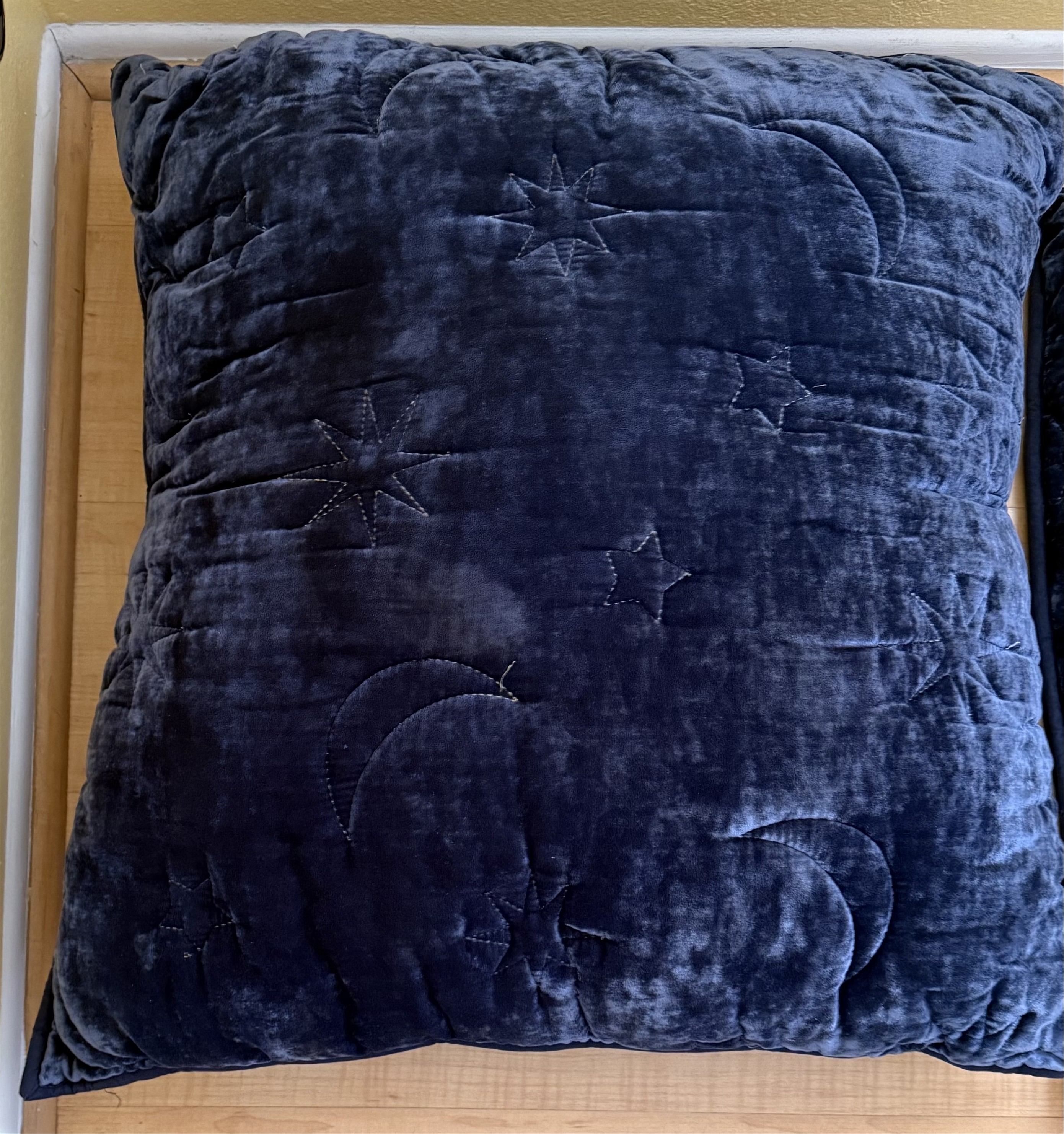 2 - magical velvet euro shams in midnight blue in very good condition (I have the euro square inserts but the shipping cost would be increased if you want them)