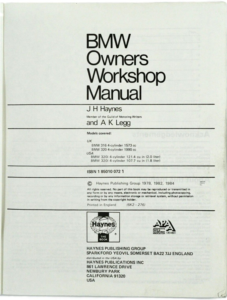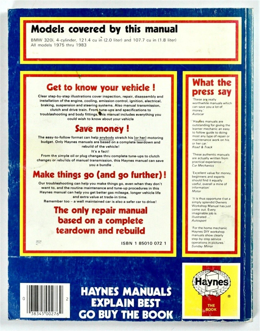 BMW 320i 1975 thru 1983 Haynes Automotive Repair Manual
