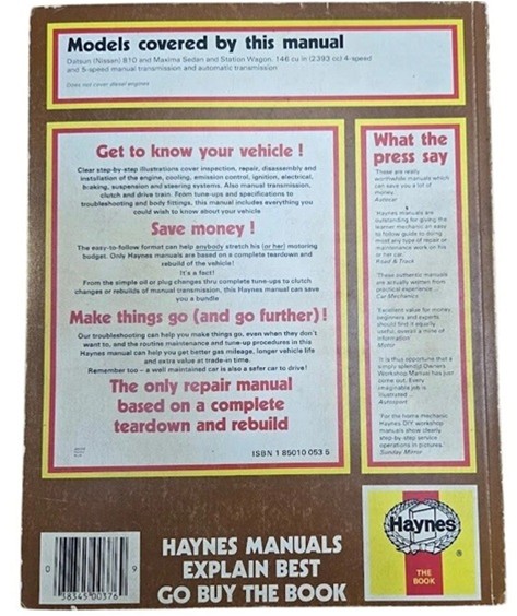 Datsun 810 & Maxima Sedan, Wagon & Coupe (77-84) Haynes Repair Manual (Does not include information specific to diesel engines. Includes vehicle ... specific exclusion noted) (Haynes Manuals)