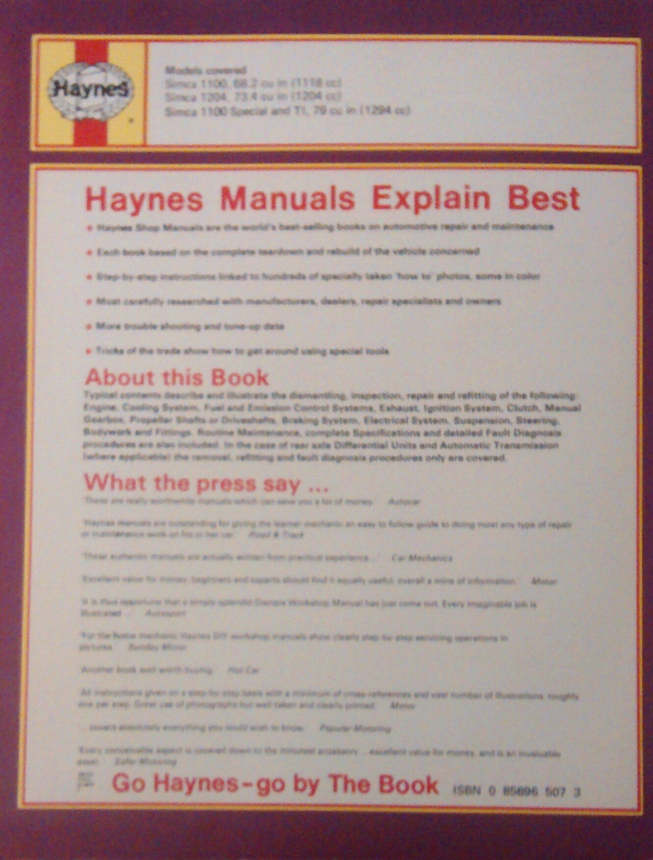 Whether you just want to change your oil or replace your plugs, or change your clutch or rebuild your gearbox, the Haynes manual will show you how, and can help you save money on servicing and repair bills.