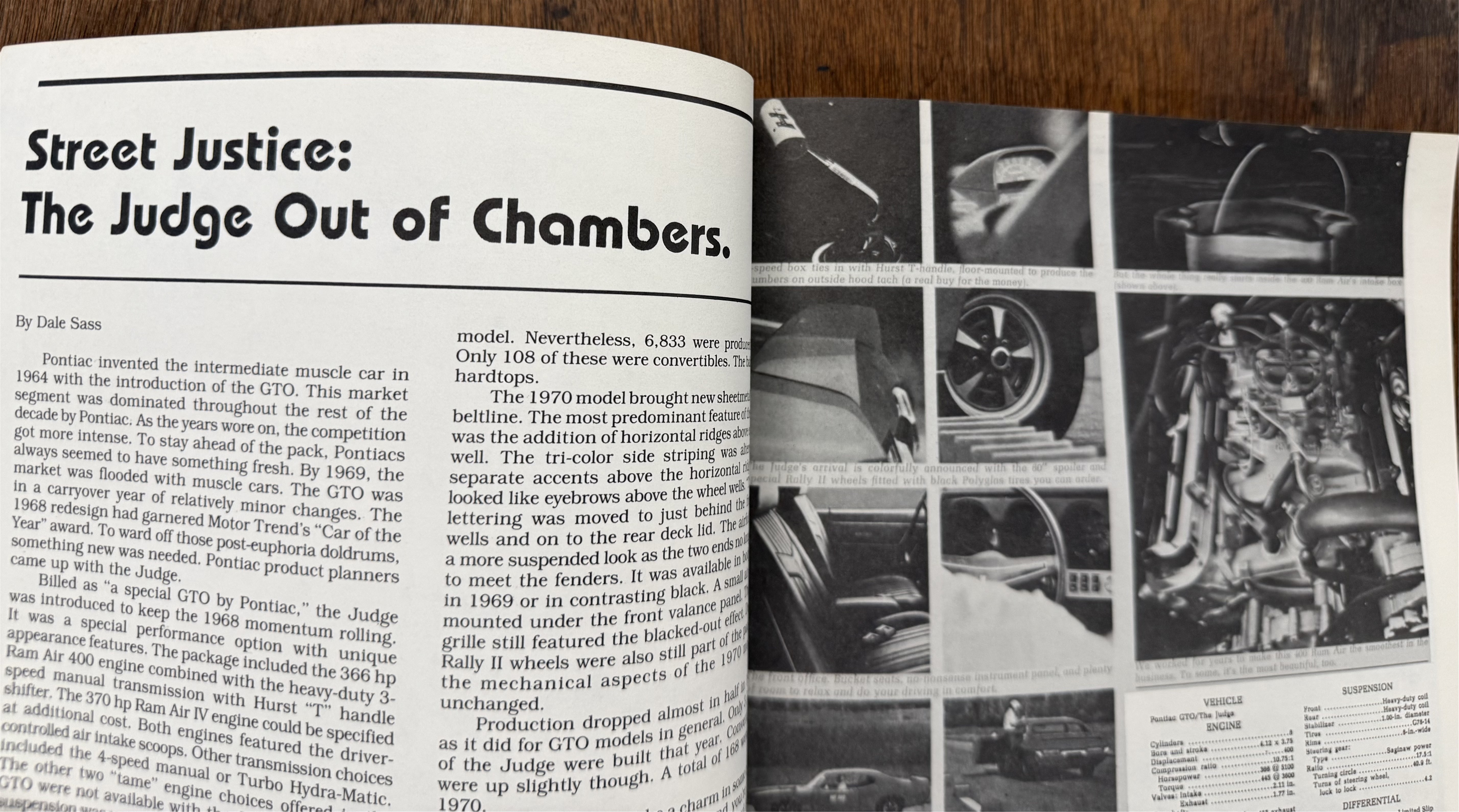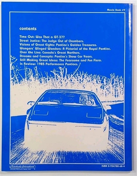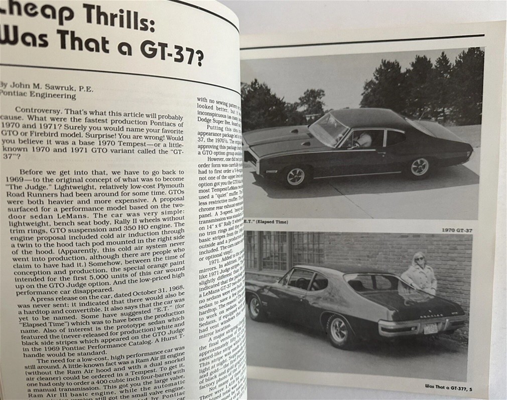 This book is a collection of stories exploring Pontiac muscle, illustrated with black and white pictures. The articles include: