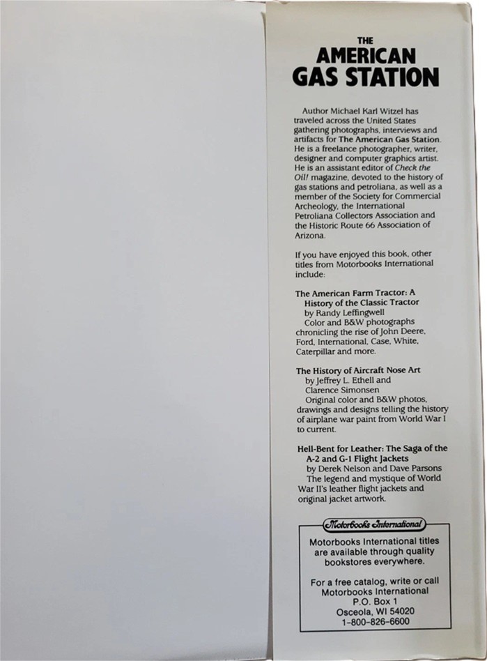 From the fly leaf: "The gas station occupies a prominent position along the grand highway that is American history.