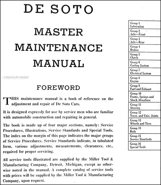 - the 293 page "De Soto Master Maintenance Manual",