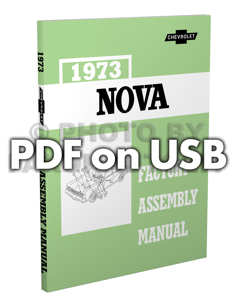 This USB offers page-for-page reproductions of three factory assembly instruction manuals: 1973, 1974, 1975 and 1976 Nova. This USB gives you assembly illustrations down to the last nut, bolt and screw. It shows exploded views of nearly every mechanical part of the car, and includes part group numbers. Use this manual to help you disassemble or reassemble parts of your car, and or to help identify parts that may be missing or incorrect. The book contains production and regular production option information. That means that you get information on the base model all the way up to "fully loaded." You will find illustrations for body mounting, frame, front & rear suspension, brakes, engine, transmission, fuel & exhaust, steering, wheels & tires, sheet metal, electrical, radiator & grille, bumpers, and much more. You will also find accessories and options such as the radio & speakers, heater, and much more. There are exploded views and illustrations on just about every image, with wiring diagrams, torque specifications, and handwritten revision records. This USB covers all 1973-1976 Nova models. Like all assembly manuals, this USB is reproduced from books made for use inside the factory, and never intended for the public. Therefore, the images (like the print in original assembly manuals) is occasionally light. This is the best quality available. The 1973 book has 372, the 1974 book has 396 pages, the 1975 book has 435 pages and the 1976 book has 441 pages. New condition. Go on and tear that car apart! This USB will help you put it back together.