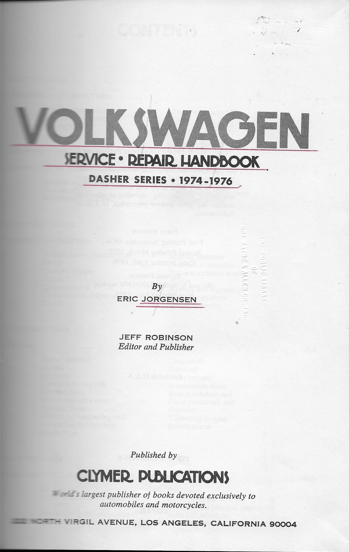 Volkswagen service-repair handbook, Dasher series, 1974-1976